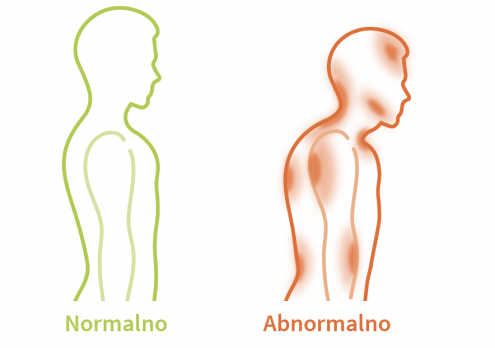 Promjene na kralježnici razvijaju se kroz vrijeme, godinama. U trenutku kada tijelo više nije u stanju kompenzirati te može doći do permanentnog oštećenja, tijelo nam šalje signale. Mišićna napetost je jedan od prvih znakova da nešto ne valja, često popraćeno sa glavoboljom. Lista tegoba uslijed pomaka glave prema naprijed je duga i raznovrsna. Cilj kiropraktike je vrlo preciznim zahvatima vratiti kralježnicu u normalnu funkciju i time utjecati na posljedice. Dolje na slici možemo vidjeti koji dijelovi trpe uslijed pomaka glave prema naprijed ili pogrbljenog držanja.